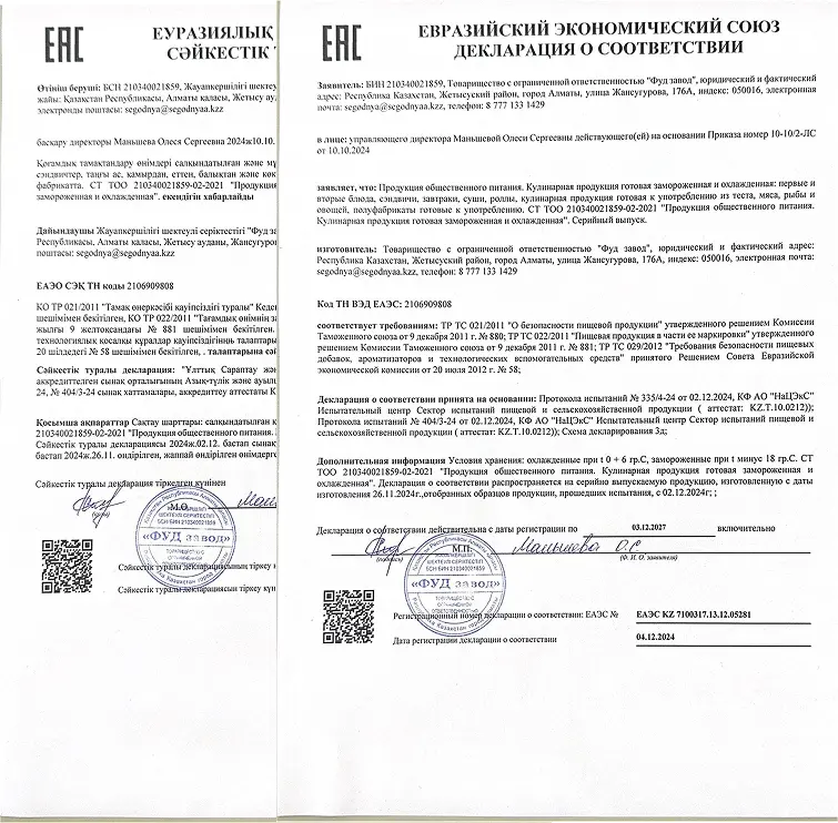 Сертификаты качества